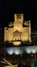 View of the city my first night in Tbilisi from my balcony. Then off to the evening walking tour.