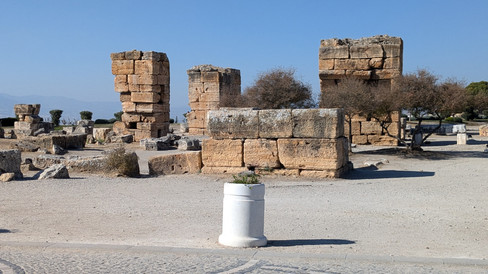 Then I got to my destination. UNESCO World Heritage Site, Hierapolis. This was a roman city that was destroyed by an earthquake 2000 years ago. Then they tried to rebuild the city using materials from the previous city, then it was destroyed again and then finally abandoned in 1690. Now it's the ruins that they are trying to restore. It's a lot bigger than I would have thought. I was there for 4 hours and I still didn't get through the whole city. For those of you in CA, think the size of Claremont. On FOOT! I don't know when they started using horses for regular transport. But you could still see the travertine tile roads and sidewalks.