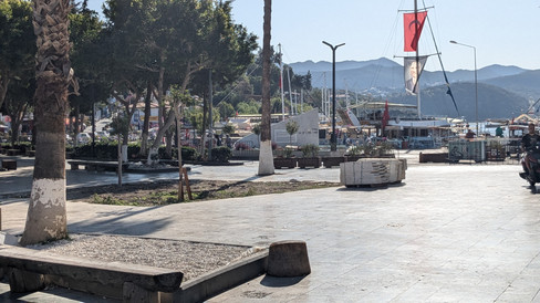These are from my drive to Kas as well as the cute little town. Only here for a couple days, then off to Fethiye. Below are pics from my drive from Kas to Fethiye. Look at the covered seating and covered picnic tables. People just pull over and have lunch/picnic, hang out and then continue on their journey. Pretty cool. I saw people later-it was pretty early when I left. Things don't seem to get started here until around noon or later...
