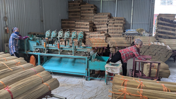 Incense Village where they make incense and can hats. I got to make one! It's on the left with my initials and 2025. Nope, I'm not an artist! Then Mai Chau Village where I took a bicycle ride tour through the village and saw a local woman weaving traditional cloth, traditional houses and beautiful countryside.